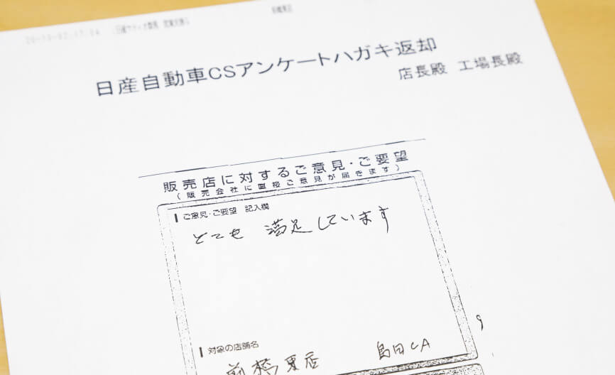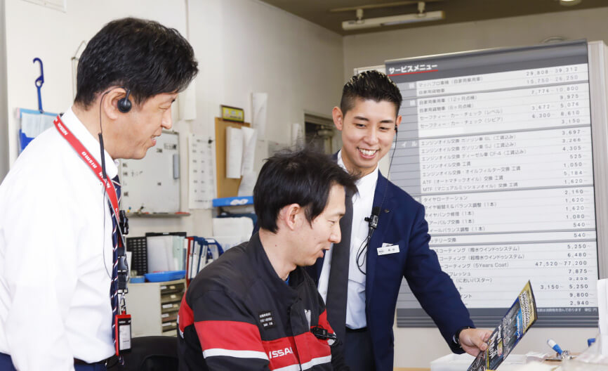 道を走っていると、ご購入いただいたクルマとすれ違うことがあります。そんな時は何とも言えない嬉しい気持ちになります。きっと、そのお客様は、いろいろなお店を回られて最終的に当店で買われたのだと思います。他の店舗でも買うことができるのに、なぜ当店を選んでくれたのか。そこには、必ず理由があるはずです。それは居心地の良さかもしれませんし、相性かもしれません。でも、最大の理由は、お客様と真摯に向き合い、クルマではなく「豊かなカーライフという価値」をスタッフ全員でご提供できたからだと思っています。お客様の笑顔のために、個人ではなくチームで取り組む日産サティオ群馬、いいですよね。
