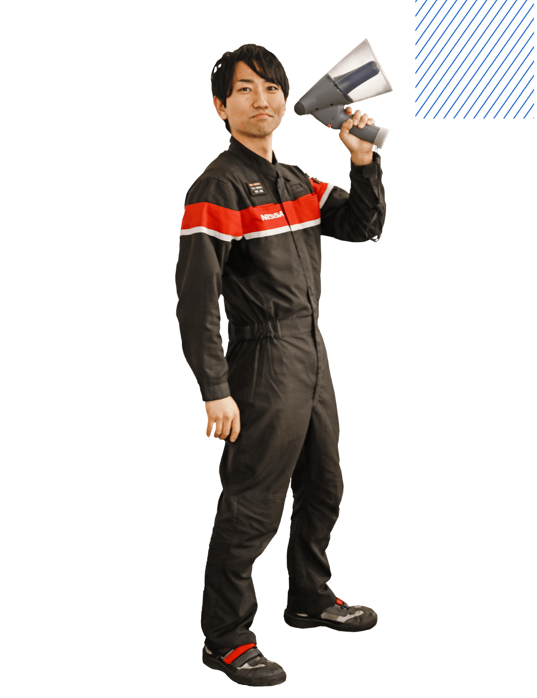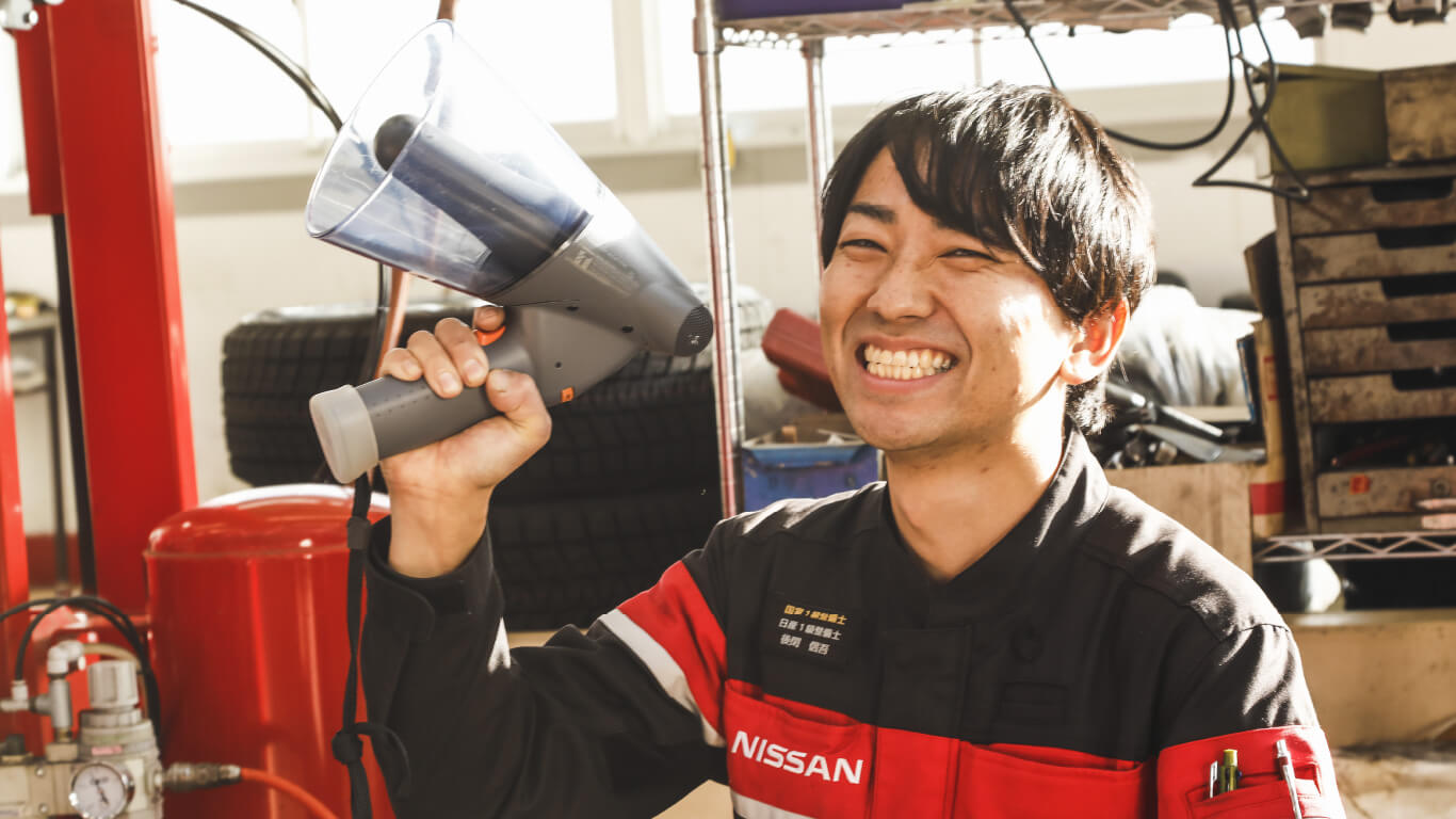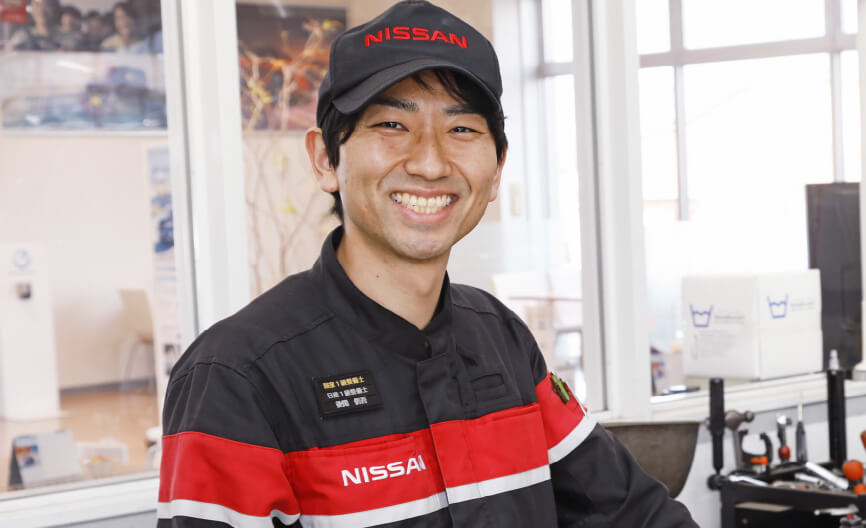 私は、日産の自動車大学校で整備を学んでおり、将来は、レースメカニックになりたいと考えていました。あるとき、その学校に日産サティオ群馬の方がいらっしゃり、講演をされたのですが、その方は「フーガ(高級車)であってもマーチ(大衆車)であっても対応に差をつけてはならない。お客様にとってはマーチもフーガである」と話しをされており深く感銘を受けました。お客様の心に寄り添うことの大切さ。こんな素晴らしい考えをもった方がいる会社で、整備士として働きたい。そう心は大きく動き、入社を決意しました。