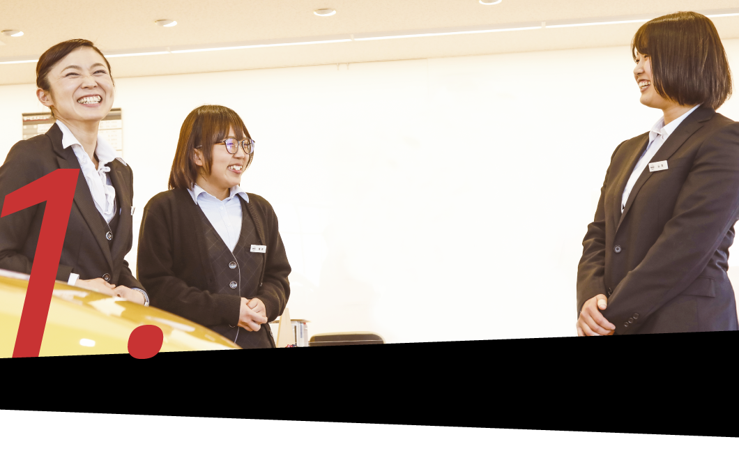 クルマを通して得られる「未来」です。クルマを販売する仕事というと、テクニックを求めてしまう人もいるでしょう。しかし、それは違います。私たちがお客様にご提供しているのはクルマではなく、クルマを通して得られる「未来」です。ご家族、ご友人、恋人、そこには様々なドラマがあります。それぞれのお客様が思い描く未来を叶えるお手伝いをする。そのためには、しっかりとお客様の声に寄り添うことが大切です。それは仲間であっても同じことです。仲間と協調することで、人の力は何倍にもなります。チームの力があってこそ顧客満足度の向上につながっていくのです。